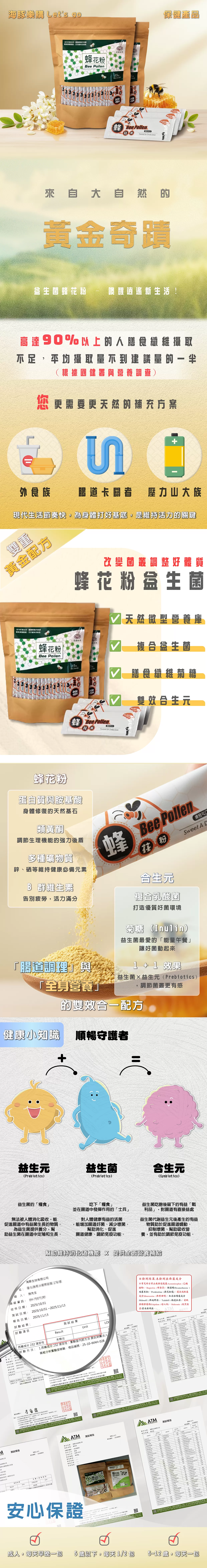 ✔️蜜蜂花粉、複合乳酸菌粉、菊糖。