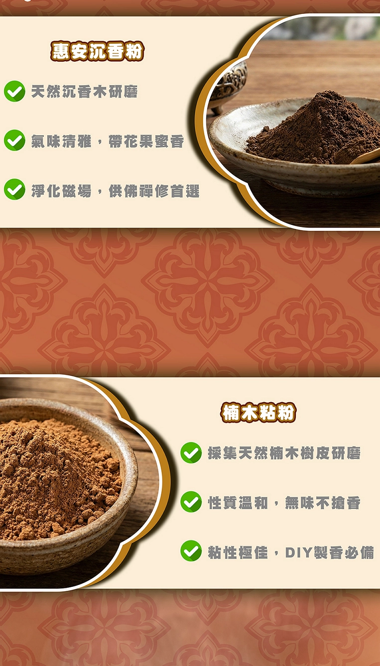 【產品定位】: 傳統祭祀、高品質沉香、敬神祭祖 【核心成份】: 惠安沉香粉、楠木粘粉 【核心功效】: 上達天聽:沉香被視為能溝通天地的媒介,高品質的惠安沈是對神明祖先最高的敬意。 天然無負擔:堅持只用天然楠木粉沾黏,不流淚、不薰眼。